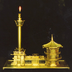 Crafted with bonze casting through long model making by Pusan tower. Desktop cigarette set with decoration